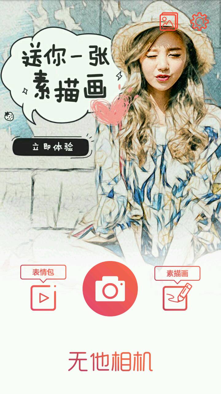 首先,打开无他是图一所示的,左边那个表情包我还没试过,其实我一点都不好奇(´⌒`。)右边呢,是两个效果,彩铅和素描,个人感觉没啥用┐(´-`)┌不过我觉得水印还是很好看的∩_∩