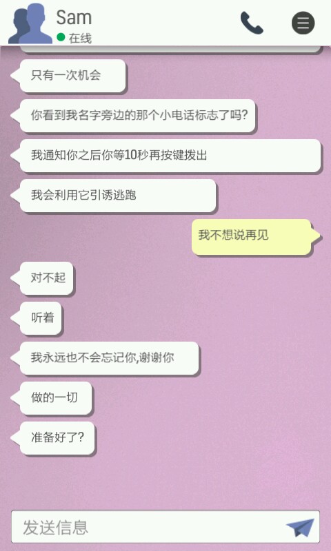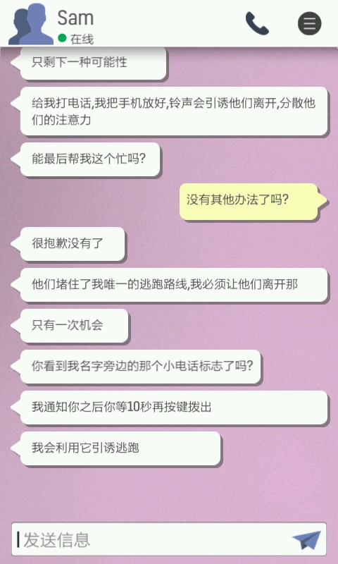 於是二周目的我決定【待在那不動】!然而那男的竟然到窗前盯著Sam!真是變態!