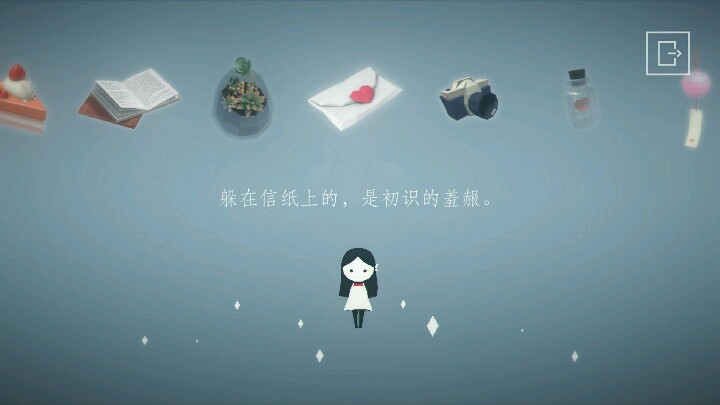 首先这个游戏名字就有一种小清新的感觉,昔,也就是回忆往昔的意思。游戏的大结局也不是一个he,女孩一直孤人一人寻找与男孩之间的回忆。游戏关卡一共有七关,每一关对应不同的主题,不同的色调和元素,每一个主题的关卡通关就取决于这些元素,有星月,雨滴,小船,时钟以及莲花,玻璃镜像等等。在玻璃镜像那一关,男孩有两个,需要你找出正确的那一个,不然你就需要把两个男孩所在地都通过才行。游戏的主要玩法是旋转,挪移,需要注意的一点是当方块与男孩所站方块位于同一水平线上的时候,移动方块会使男孩一起移动。每一个小关卡通关过后男孩会交给女孩一个东西,那就是他们的美好的回忆碎片。每个道具都有一个简单的描述,有一个生活中的小情节,感觉很真实,很贴近情侣之间的日常。本游戏的bgm有点小忧伤,滴答滴答的,有的时候某些关卡听起来就像是心碎的声音,感觉挺符合游戏背景人物的心境的。除此之外,这个游戏是国产的,感觉算是国产一个良心的偏文艺剧情的小清新之作了。接下来分享女孩找到的所有东西。