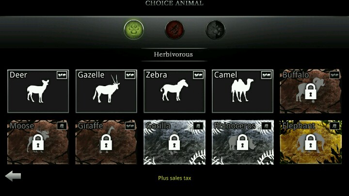 截图完毕⊙▽⊙,喵,进去之后,如图一显示这个界面,喵,然后你点击下面那个“NEW ANIMAL(新的动物。)”按钮,之后是这个界面,如图二,喵。在这里你可以选择三种类型的动物,一种是食草动物,喵,一种是食肉动物,喵,还有一种是杂食动物,喵,杂食动物没解锁要花钱买的,喵~这个就看你喜好了,喵,随便你选择什么动物,喵,之后就是图三了,喵~刚开始会给你两千的钱,可以加加属姓什么的,喵,还有可以换性别以及可以改名字,左边三个图案显示它是什么动物,是食肉的还是食草的或者杂食的,喵,右边那两个图案是说明他是群居还是单独一个的,喵~完成之后点击“HOMESELECT(这个的具体意思我也不知道,反正应该是选择家庭住址的)”然后是图四,一张大地图,喵⊙ω⊙。这个看你自己喜好,随便选吧,特别提醒你一句,不要乱选,因为有些地方是有大boss的,喵。全部弄完之后就会出现图五,点击“OK”后会进入一段动画,貌似应该是一群丧尸狗(鱼唇的汪),把我们赶出去了如图六,喵。这样就进入了加载界面,会出来个广告,不要点那个广告,那个广告如果点了的话,喵,你再点返回键会直接退回到主画面,那个时候你可以按开始来开始,如果不点的话,你就会直接进入游戏,这样就可以了喵呜。