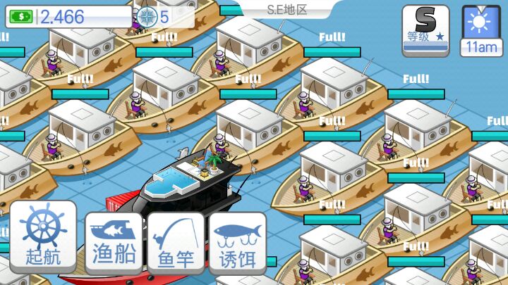 这个游戏一天通关,一开始就做任务升级鱼竿,老老实实升级鱼竿,里面买家具和刷新鱼体积的大小还有买船还有做任务这些是升级的来源。 在A级之前就一直好好做任务,当到达A级后就买鱼船放出去钓鱼,里面鱼的价格很改变,当你把鱼卖完会显示的,接下来就是到处放鱼船钓鱼,钓钓传奇鱼,任务也不要去做升级S买那个100万的船就可以了。 到了S级后你发现那个鱼老板的第一个任务就是随便钓一条鱼,我把我的钓鱼大舰队拉去,发现钓的鱼他不要可能是钓的太垃圾了,于是我又掉了几条传奇鱼发现这狗崽还不要。 那么是你鱼老板眼光高,还是我老渔夫不够骚(ಡωಡ)。
