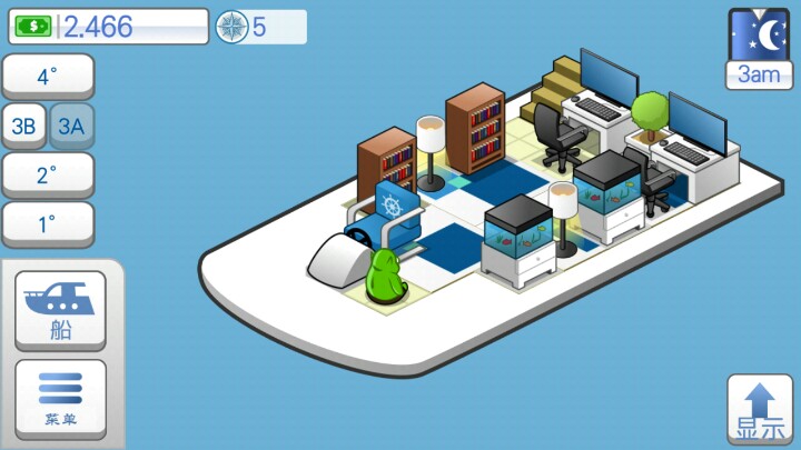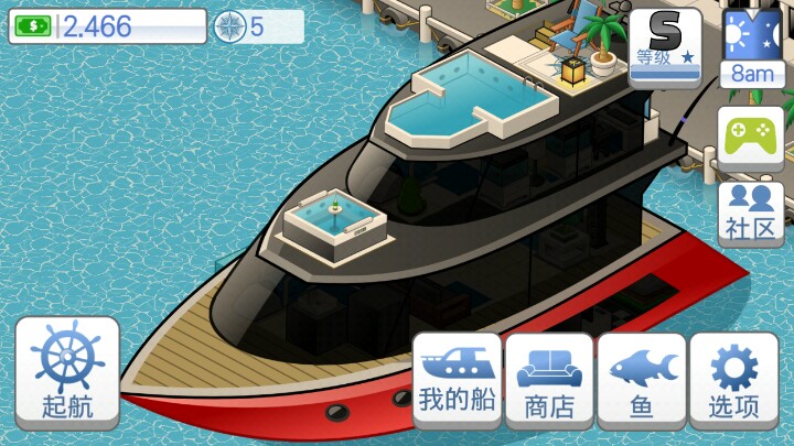 这个游戏一天通关,一开始就做任务升级鱼竿,老老实实升级鱼竿,里面买家具和刷新鱼体积的大小还有买船还有做任务这些是升级的来源。