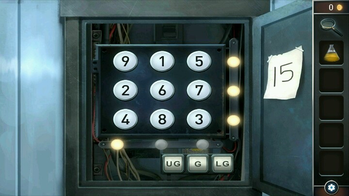 三、用手电筒照亮门旁的开关,按动红色按钮,躲避红外线,使球顺利到达绿线处。
