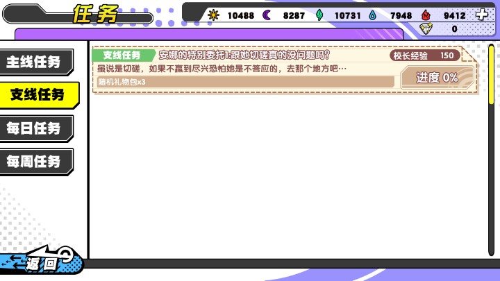 6宿舍的话给自己喜欢的小姐姐送礼就行,不过小心某些礼物是她们并不喜欢的哟。送到一定程度就会触发支线任务,奖励大多是随机礼物包x3。