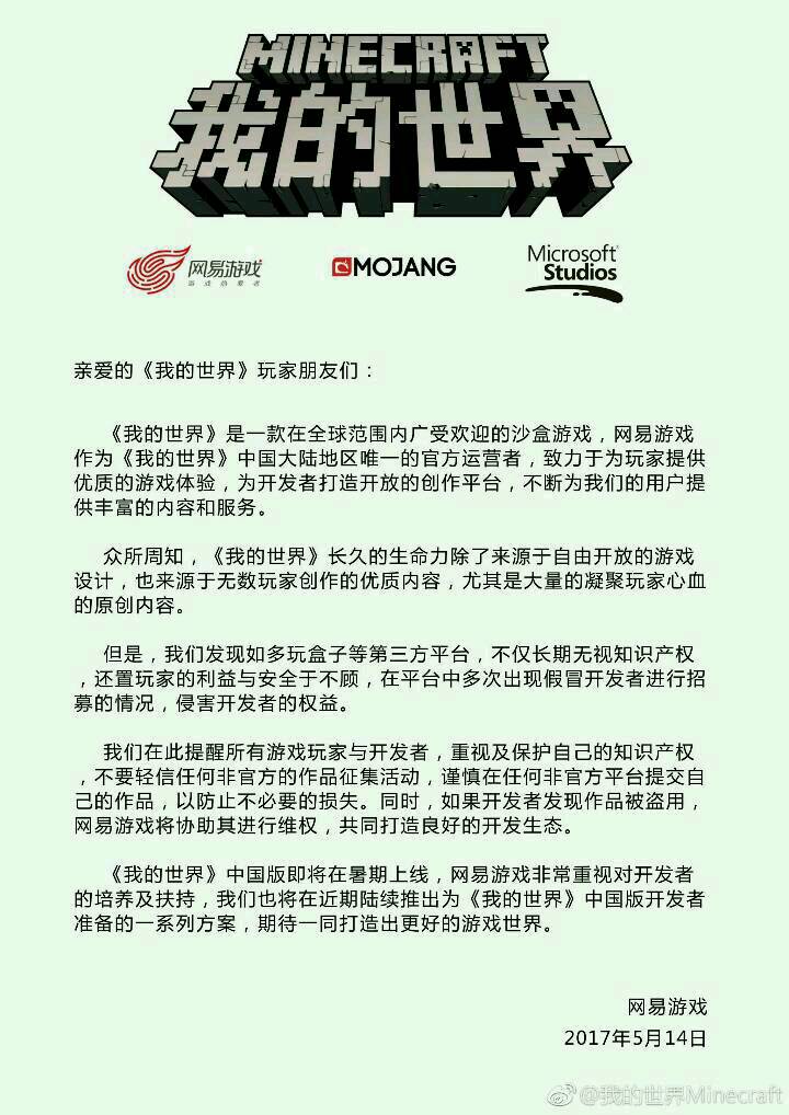 2017-08-11 [有回复] Che2-TL00坏消息:从1.2.0.7开始,MC就有了验证安装的是正版还是盗版。而且炸妈我的世界盒子也被我的世界开发商“MOJANG”控告侵权和非法制作外挂还有提供我的世界盗版下载。并且要求炸妈我的世界盒子停止一切有关业务