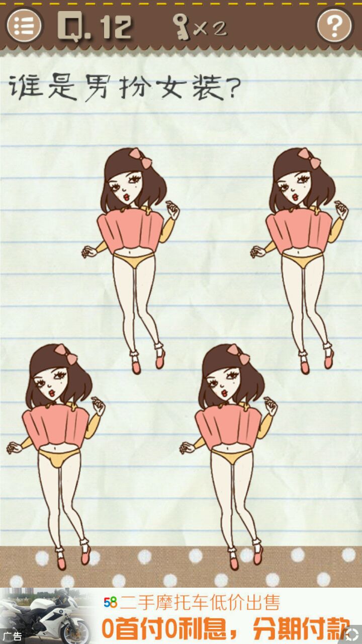 手机倒过来,看看哪个人胖次有♂凸♂起点击他即可通关。