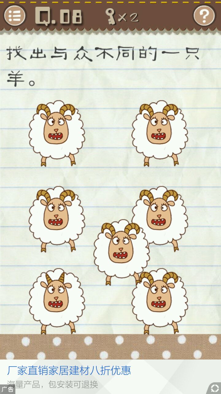 和第四关很像,左下角小羊拖出,拖出后还会有一个角与众不同的羊,点击它就可以通关。