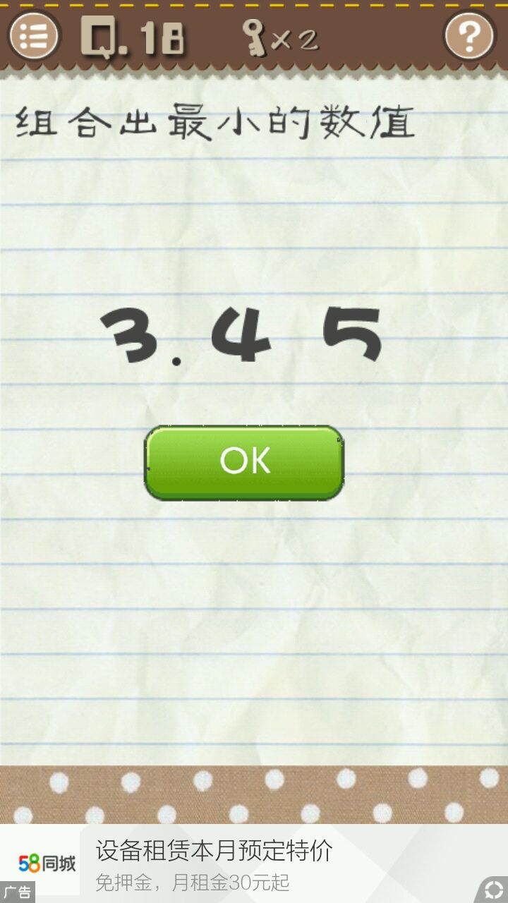 题目末尾的点拖动到第一个数字的后面,移动数字,摆成3.45,点击ok即可通关。