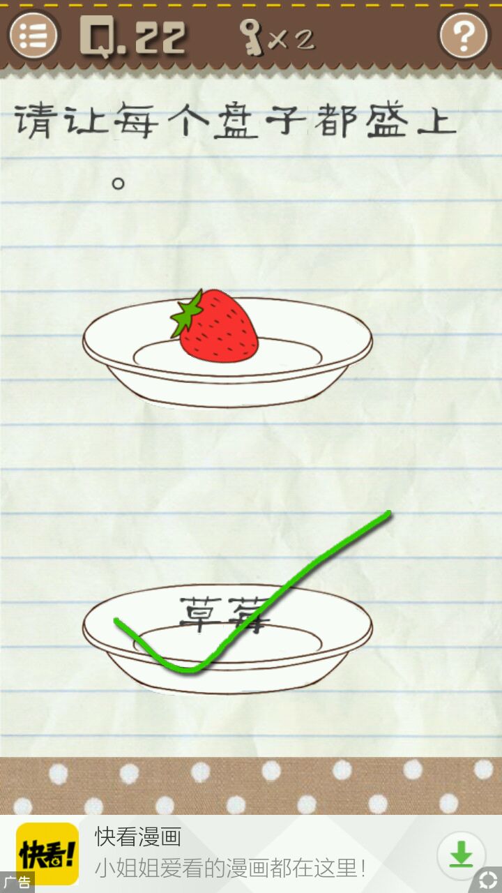 没有另一个草莓了,只能把题目里的草莓拖到盘子里即可通关。