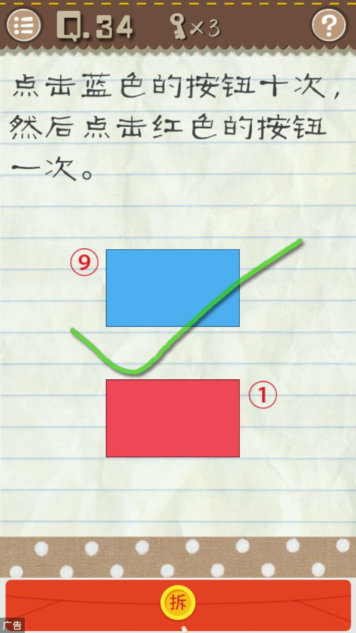 点击九次蓝色图形再点击一次红色图形即可通关。