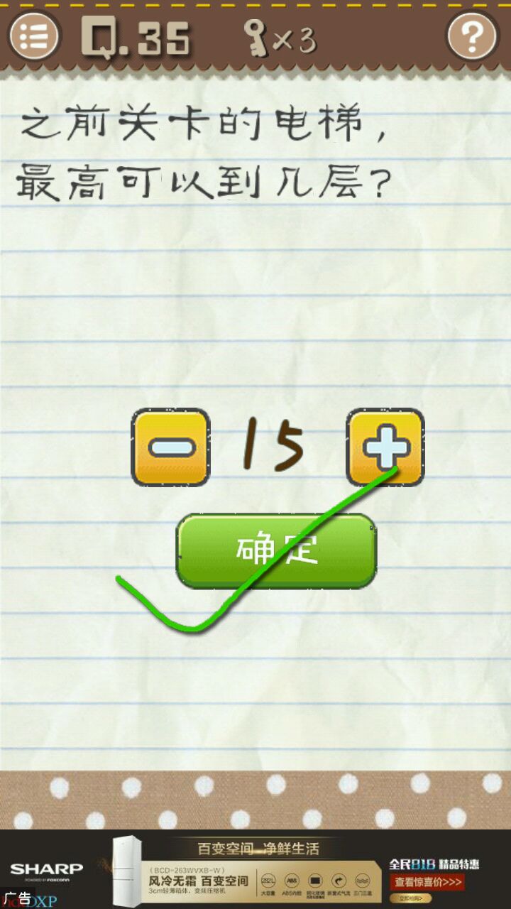把题目“电梯”二字拖到比初始位置高为止,即可通关。