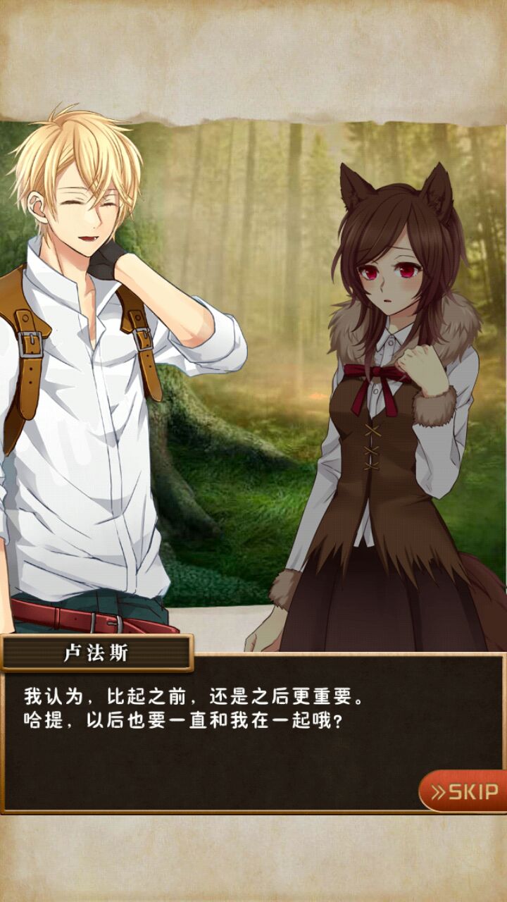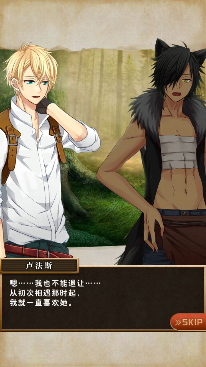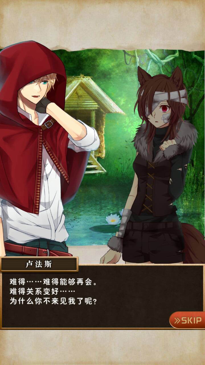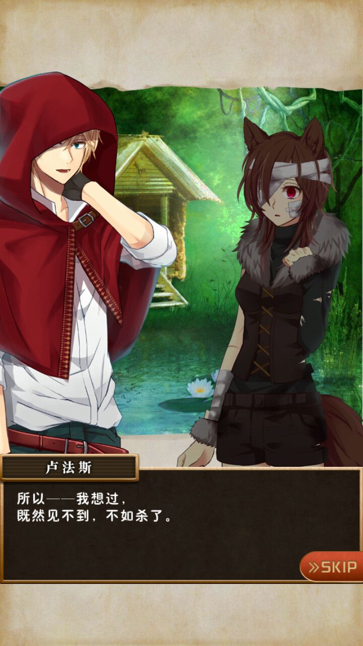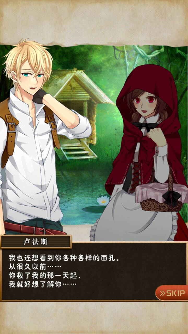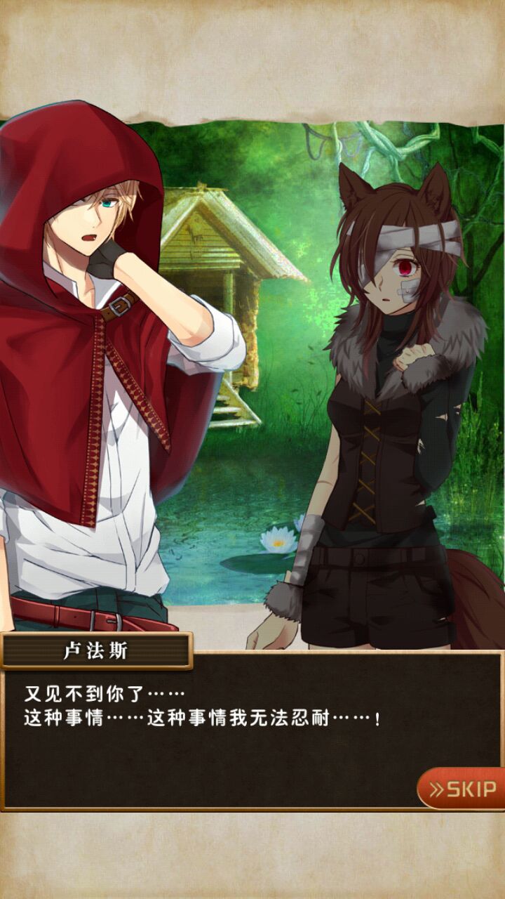 已攻略完毕 想留个名在此【游戏方式】是属于点击收集分数类型 而且等待时间也很短 点击完毕后只需再等1分钟就可以继续点击 直到一定的分数就可以开启下一个故事内容 【故事大纲】是讲述关于迷路的小红帽被狼吃掉后 被一位路过的猎人所救出 之后两人结婚并怀了孩子 他们将红斗篷披在孩子身上并命名为「小红帽」 可是故事并未结束... 被猎人杀掉的狼的孩子 对自己发誓要将小红帽杀掉以报复 可惜每次的复仇都以失败告终 最后狼们并以「为复仇死去的伙伴复仇!」为借口而生活 现在也开始继续对「小红帽」进行新一轮的复仇计划.....【攻略对象】有两位: 狼人 猎人PS:女主是狼人 •̀.̫•́✧狼人↠ 如家人般的存在 很关心女主 好像有点傲娇...? 自小就在一起玩耍 属于默默守护型 (注定悲伤收场啊 这设定QQ)猎人↠ 在女主被村民追赶时对女主出手相助的人 和女主很投缘 喜欢和女主相处的时间 因为自己一个人呆在森林深处 所以女主的出现让他感到高兴不已 途中女主透露自己是狼人时依然不嫌弃女主 似乎过去认识女主...?【结局】有4个:NE BE ; SAD END HE1个角色2个结局(见图二) 左一左二 与 左三左四到底与谁一起会得到HE呢? 我就透露到这里 有兴趣的话推荐去玩 流程很短 勤劳的话2天就能玩完了最后两位害羞的样子好可爱啊啊啊啊///////评论处放CG图~~