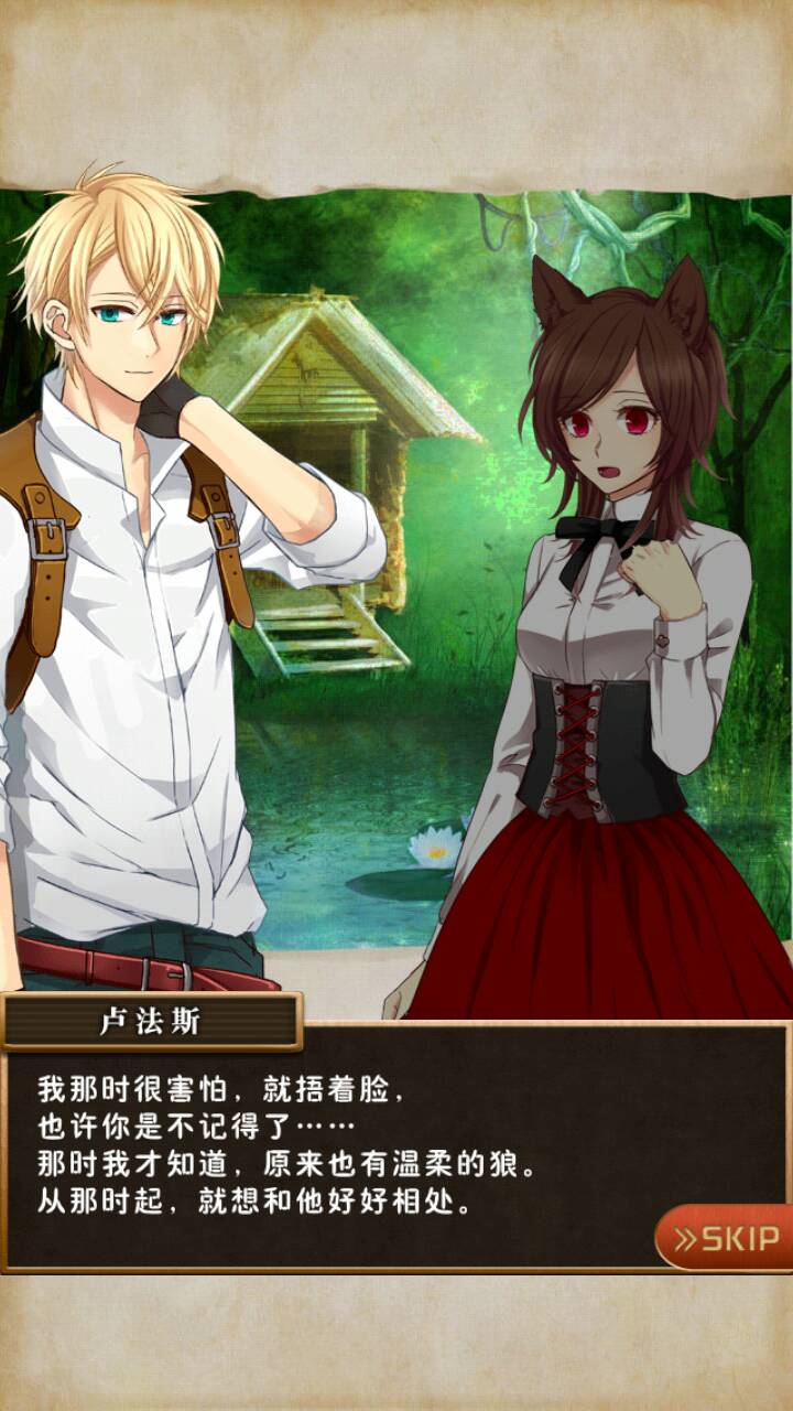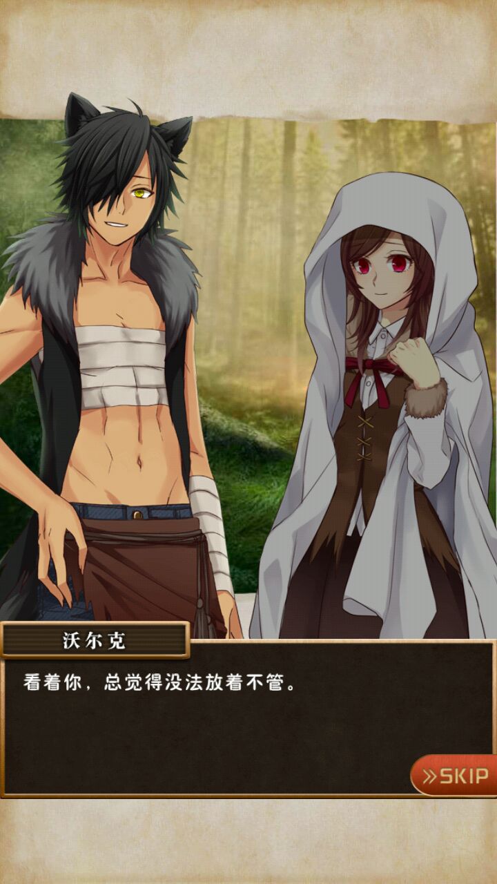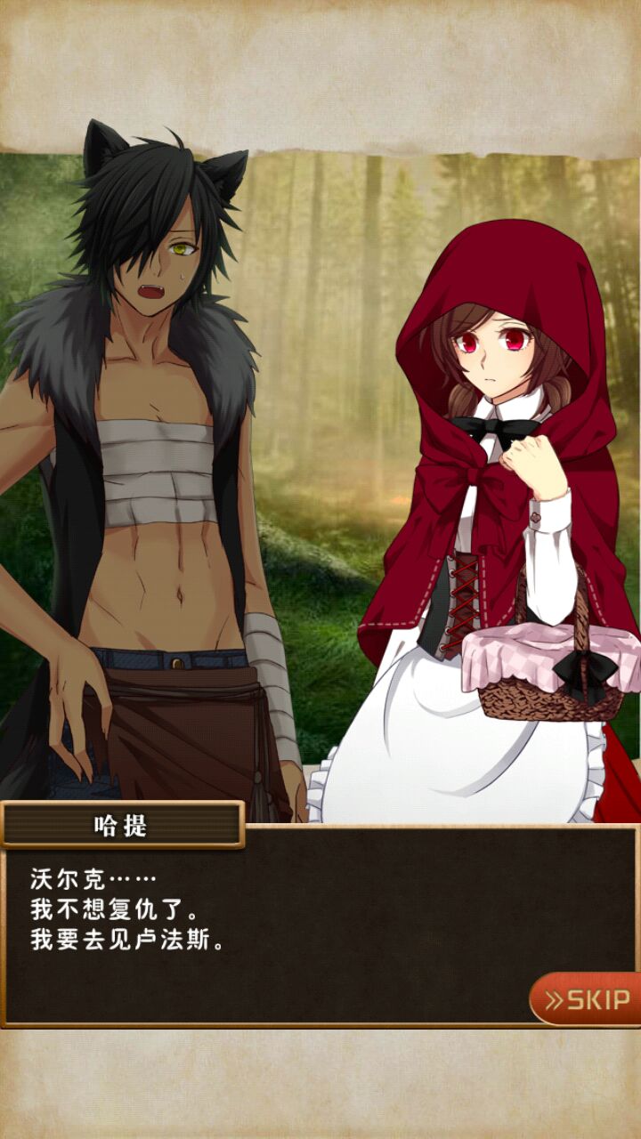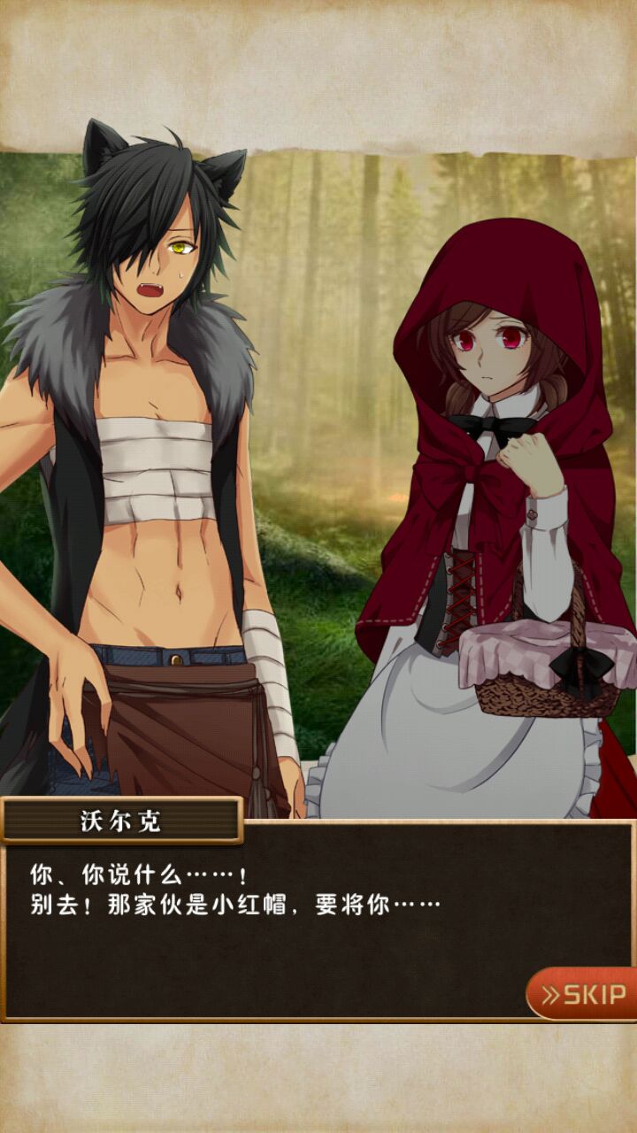 已攻略完毕 想留个名在此【游戏方式】是属于点击收集分数类型 而且等待时间也很短 点击完毕后只需再等1分钟就可以继续点击 直到一定的分数就可以开启下一个故事内容 【故事大纲】是讲述关于迷路的小红帽被狼吃掉后 被一位路过的猎人所救出 之后两人结婚并怀了孩子 他们将红斗篷披在孩子身上并命名为「小红帽」 可是故事并未结束... 被猎人杀掉的狼的孩子 对自己发誓要将小红帽杀掉以报复 可惜每次的复仇都以失败告终 最后狼们并以「为复仇死去的伙伴复仇!」为借口而生活 现在也开始继续对「小红帽」进行新一轮的复仇计划.....【攻略对象】有两位: 狼人 猎人PS:女主是狼人 •̀.̫•́✧狼人↠ 如家人般的存在 很关心女主 好像有点傲娇...? 自小就在一起玩耍 属于默默守护型 (注定悲伤收场啊 这设定QQ)猎人↠ 在女主被村民追赶时对女主出手相助的人 和女主很投缘 喜欢和女主相处的时间 因为自己一个人呆在森林深处 所以女主的出现让他感到高兴不已 途中女主透露自己是狼人时依然不嫌弃女主 似乎过去认识女主...?【结局】有4个:NE BE ; SAD END HE1个角色2个结局(见图二) 左一左二 与 左三左四到底与谁一起会得到HE呢? 我就透露到这里 有兴趣的话推荐去玩 流程很短 勤劳的话2天就能玩完了最后两位害羞的样子好可爱啊啊啊啊///////评论处放CG图~~