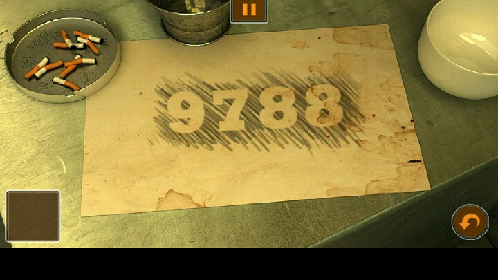 5、在桌子上的纸上使用铅笔,得到床上密码箱的密码,9788,见图4,得到钥匙打开铁门进入下一关