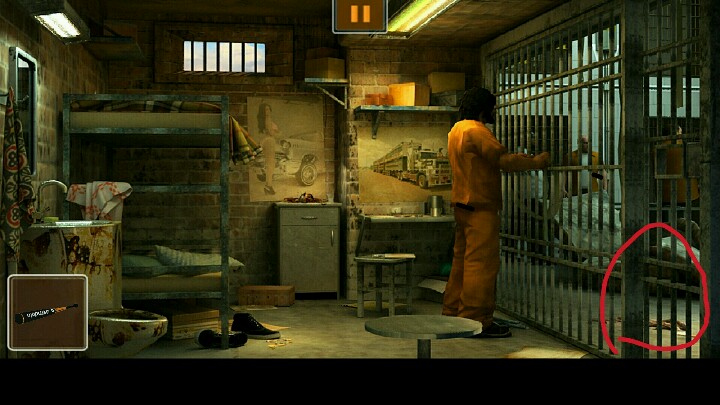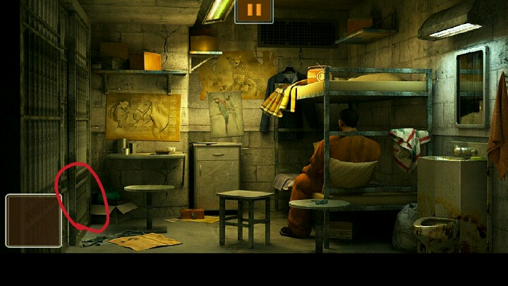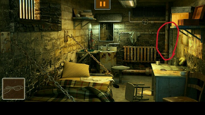 1、在上床的枕头底下发现石头,用石头砸开洗手池中的剃须刀,得到刀片。