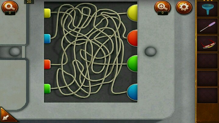 2、把四种颜色的线连接起来,把红线接入电箱,把肉块放入笼子尽头的菱形凹槽,用电线击穿肉块,进入下一关。