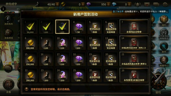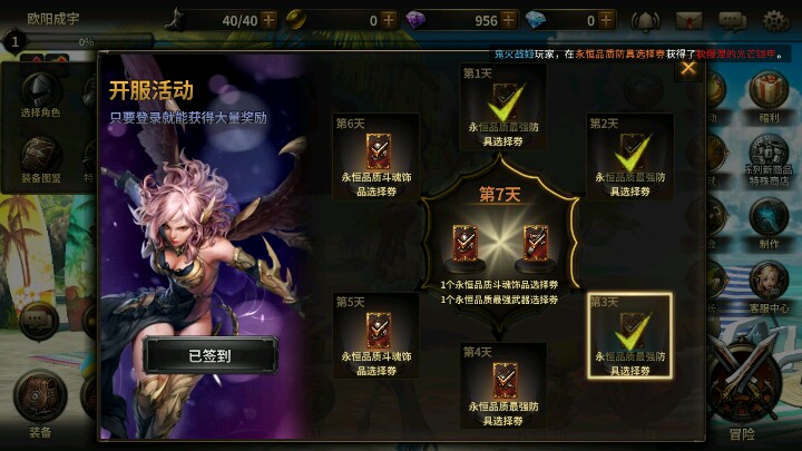 然后是萌新七日和签到福利,以及爆表的特效