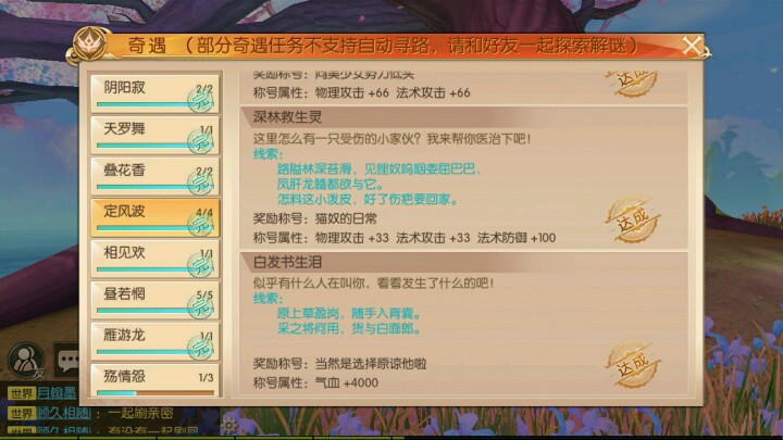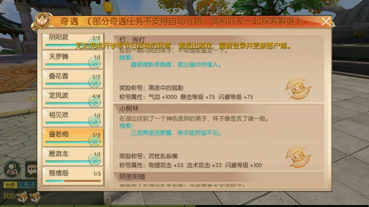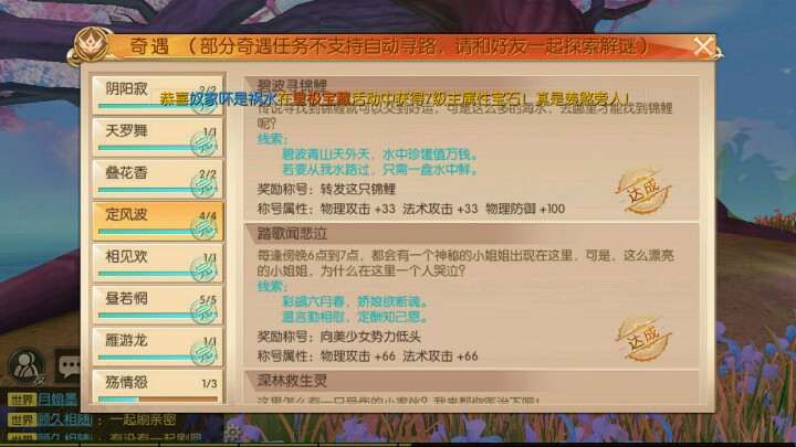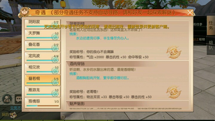 这是一个奇遇任务攻略贴,是我通过的 17个奇遇的汇总