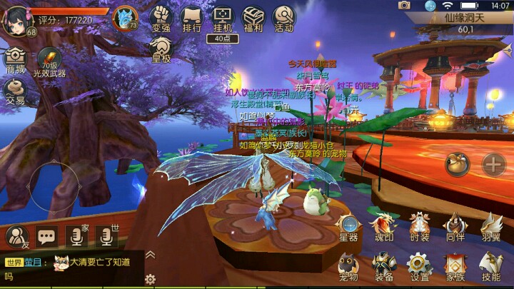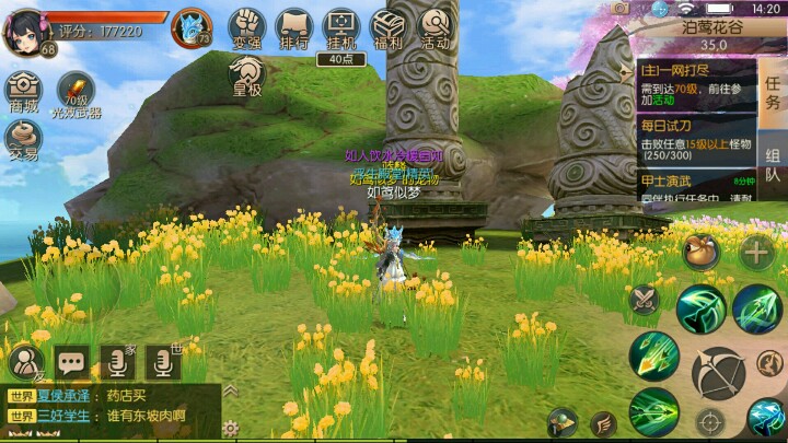 5、仙种奇缘①去仙缘洞天(60,0)的莲台等待花种刷新(见图1),记住花种出现的时间为偶数整点。②得到花种过后去泊莺花谷寻找息壤,坐标(35,0),去的时候会看到白色的字写的息壤。③ 采集完了就去找桃花树下的那个npc花冠荣。坐标(-18,-30)然后完成任务得到称号——花仙初长成