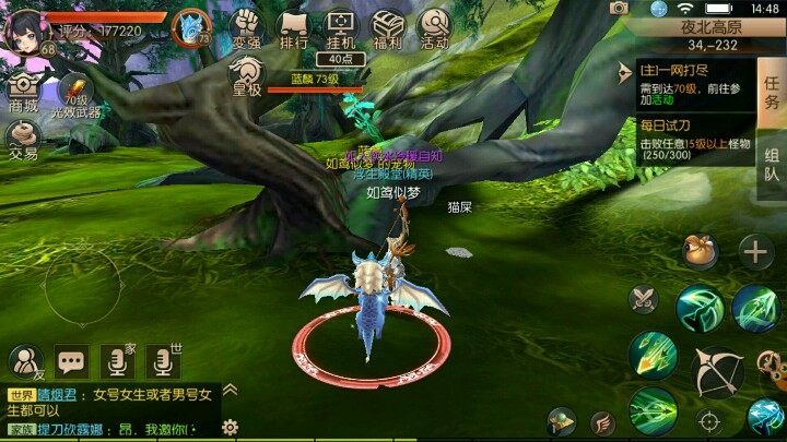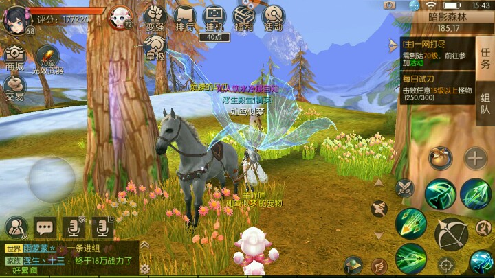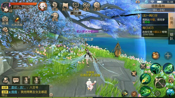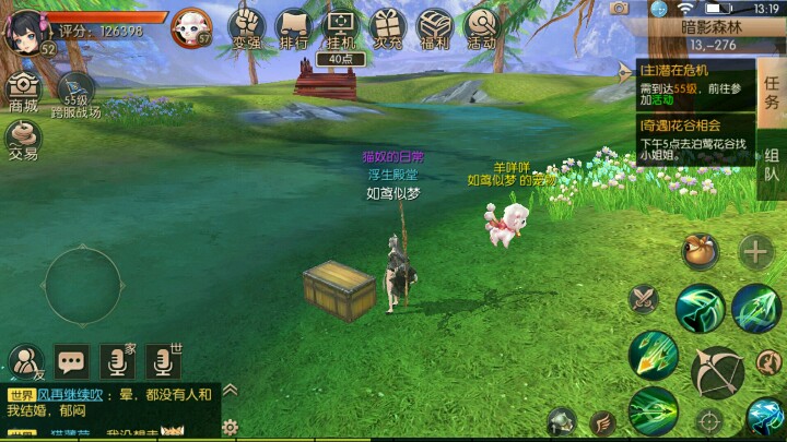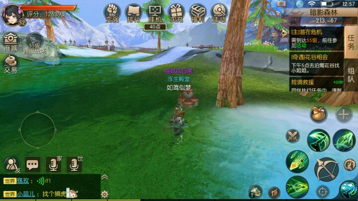 12、小树林等级限制 建议55↑再去 地点暗影森林①暗影森林坐标(166,104)找到不安的小姐姐,小姐姐在奇数整点的时候刷新,建议早上9点去~②坐标(185,17)找到烦躁的马,马在偶数整点刷新,建议下午2点去。(我早上10点去的时候马没有刷新)③找完马和小姐姐后去(183,-246)找陈忧,打败陈忧的梦魇,得到称号——沉忧乱纵横