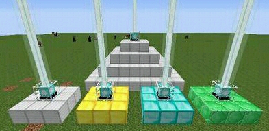 在信标下面放钻石块/铁块/绿宝石块/金块,并在钻石块/铁块/绿宝石块/金块周围再放钻石块/铁块/绿宝石块/金块