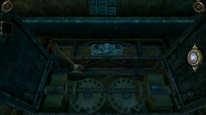 接着是另一半大脑,打开目镜(我不清楚叫什么,就叫这个了吧),把上面的两个齿轮挪下来,分别旋转,得到细木装饰(一朵花)、段线