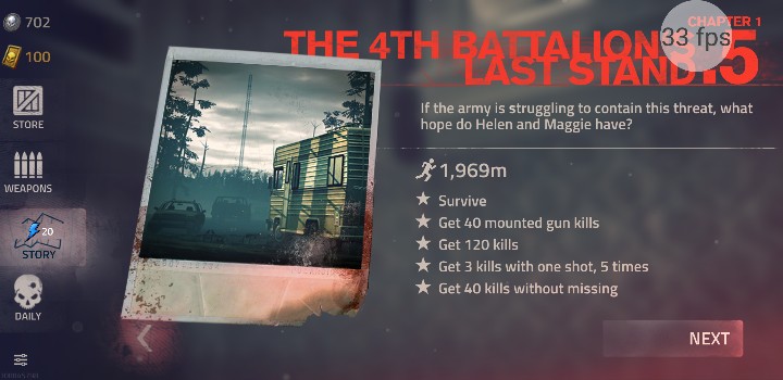 一章之一 任务目标:1.活下来。2.杀死10只。 (在一关内结算杀敌数,不累积)3.杀死20只。 (同上) 4.跳过2个路障碍。 5.一枪杀死3只 之后有空再翻译,本人google翻译修正, 如有问题欢迎提问,请多指教。