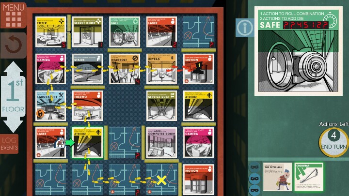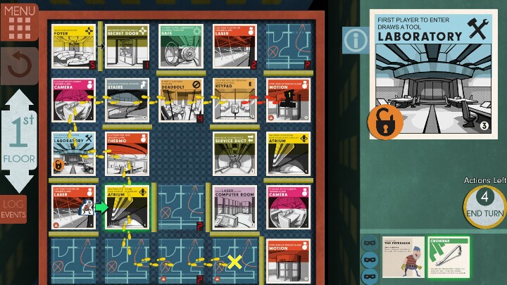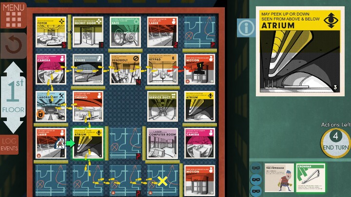 6号:当你自由行动时,你可以释放乌鸦到角色最多两格瓷砖上,但不能穿墙。如果一个守卫进入乌鸦的瓷砖上失去一次行动,乌鸦仍然存在直到你移动它