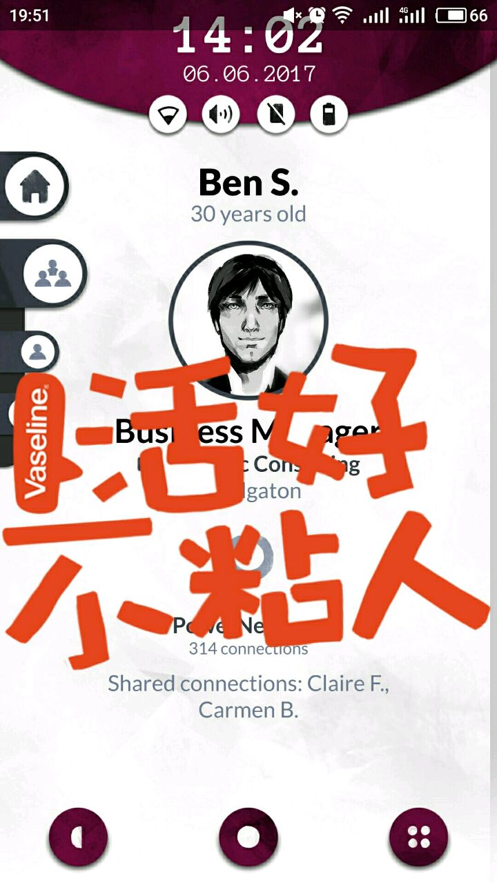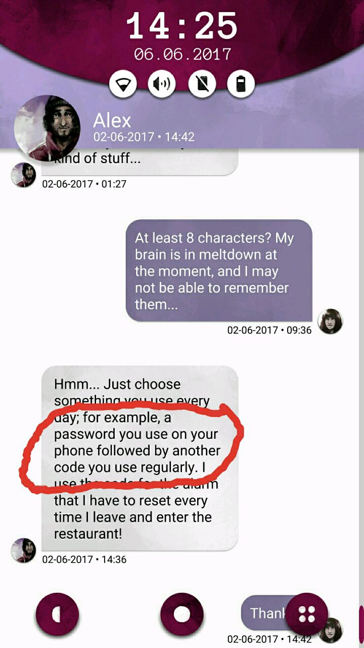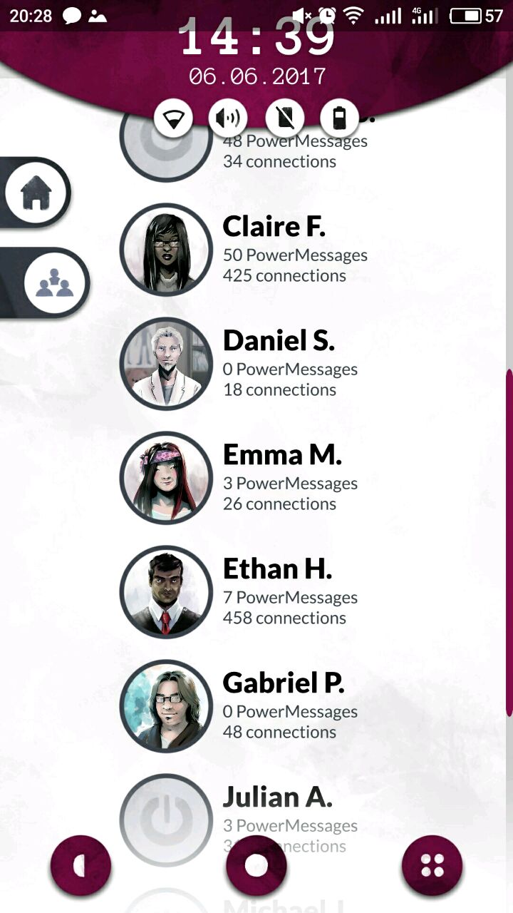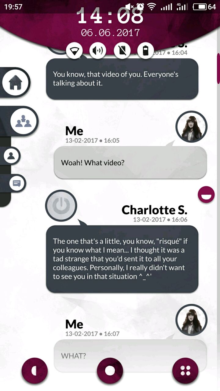 首先打开以后,界面是酱婶儿的,机主是laura,她的现任男票叫ben,从短信里能知道她家(laura and ben)门口密码是4004,这个后面有用,先把网打开,在note笔记里面找,有个密码界面,wifi密码是:6389856,打开网之后就能联网接收邮件啦~然后从邮件,短信的内容推测每个人的名字和脸搭配起来,