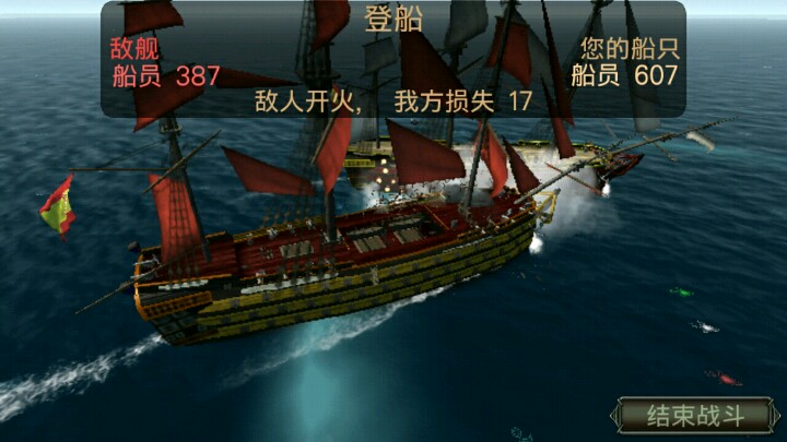 先正常走任务 在某一个港口火拼时候 会有一级舰(5级船) 几百个 火力强 拼不过 就是很不灵活 初始屁股是没有炮的 可以利用这点 怼屁股 一但靠在一起了 他就会自动接舷战 立马点结束