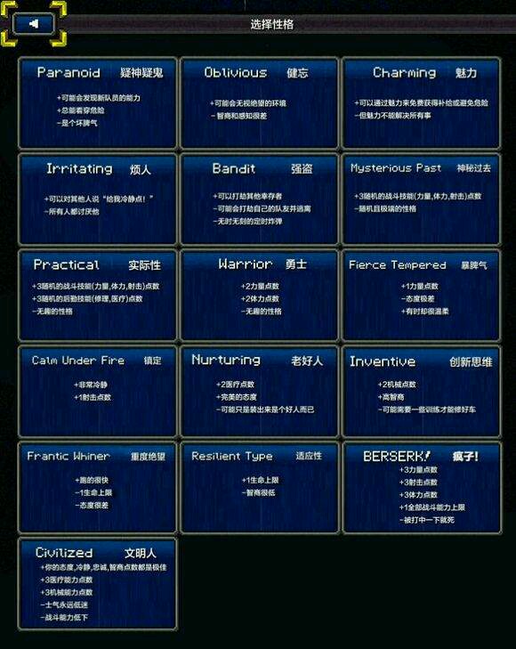 给大家讲一些小贴土关于属性 人物的属性分别是 强壮 理智 士气 体力 态度 医疗 射击 冷静 汽修 忠诚强壮 :关系到挥舞武器的速度以及举起家具的重量体力:影响体力值和体力恢复速度,挥舞武器会降低体力,体力过低会流汗脸红,大幅降低挥舞速度射击:影响射击精度(感觉作用不大)理智:与一些事件能否成功有关态度:作用不明,大概与士气有些关系冷静:与一些事件有关忠诚:忠诚过低人物容易离队甚至反水士气:很重要的属性,过低会发生各种负面事件医疗:减少疗伤所耗医疗包,该属性到达最高时可以不花医疗包治伤汽修:就是修车,低了修不好,没车很容易被打劫