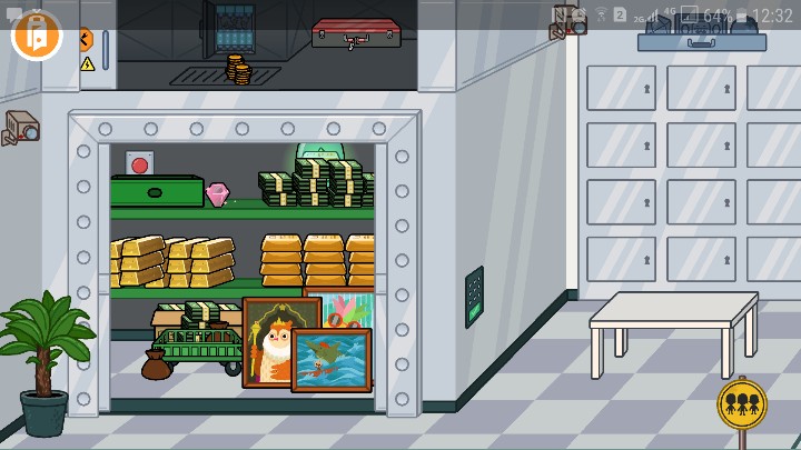 还有呢,银行里大保险柜上面有一个暗格,打开之后有一个电路板,按一下保险柜就开了。