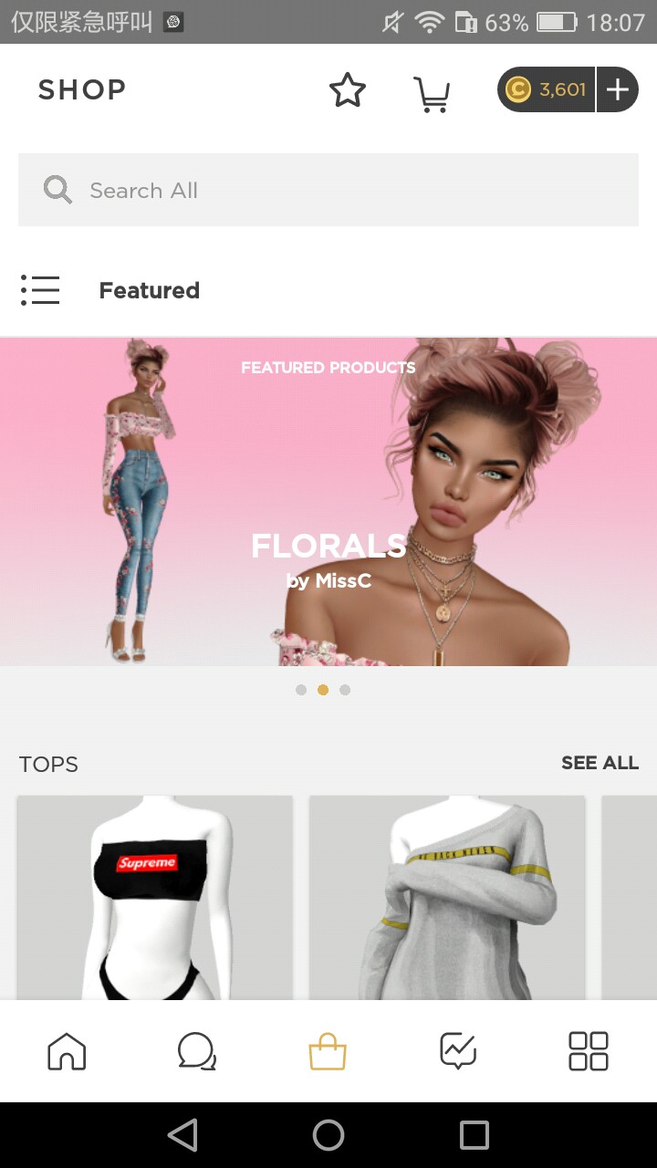 好的这里就是所谓教程向评论的唯一教程点了。从上面的模块Ⅱ说到了从试衣间拍照,那我就在这里帮帮懵逼的小萌新(´◔◡◔`)首先我们进入游戏(废话),然后点我们左上角的小头像,然后在超多的英文单词里找到“shop”,它左边有一个购物袋的图标,tap一下,就可以发现英文更多了(英文学渣跪)。没关系,不要慌,我们只需要看衣服图片,不需要读懂那些妈卖批英文!然后发现有一排单词,而你所在的是个首页,也就是那一排单词变橙色的那个单词,然后往右边看,就能看到“top”啥的(看我评论的图片),从“all”开始向右依次是全部(all),上衣(top),下衣(bottoms),鞋(shoes),饰品(accessories),发型(hairstyles),眼睛;美瞳(eyes),脸(heads),姿势(avatars),我的心愿单(my wishlist)。找到一个喜欢的,点它的图片,然后就能进入试衣间咯~
