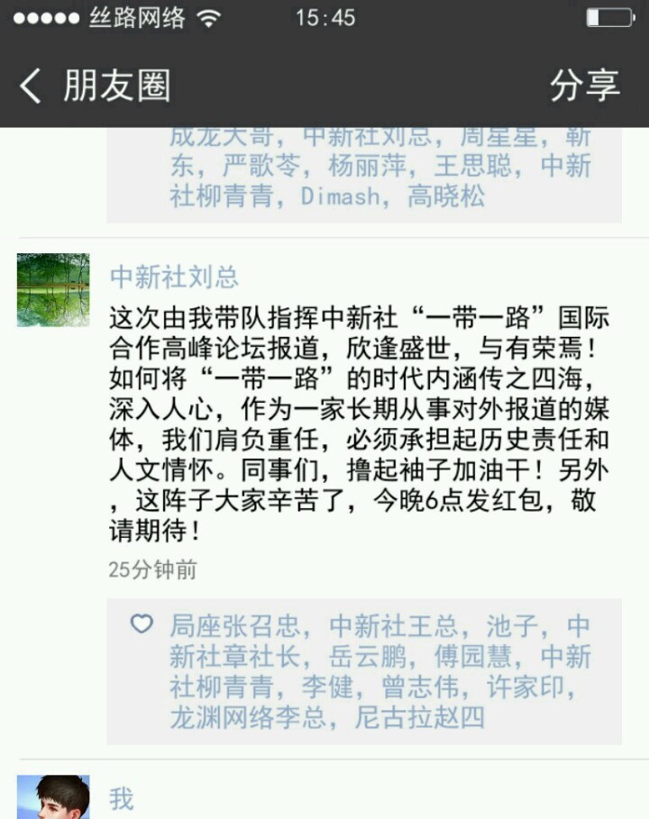 朋友圈点赞的人昵称有意思啊,局座张召忠,周星星,成龙大哥什么的就算了,尼古拉赵四是什么鬼 红红火火,还有 不拍穿越剧的艺谋,可能是我笑点低了