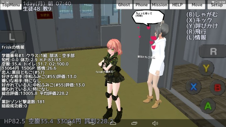 3、好感升上100或以上以后,她会向你表白,因为开了对话所以她会和你对话。(建议让她跟着自己,或自己在她身边转,这样才能触发。)