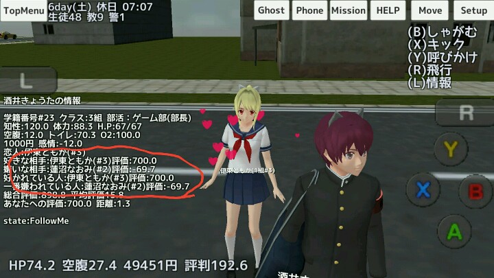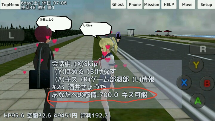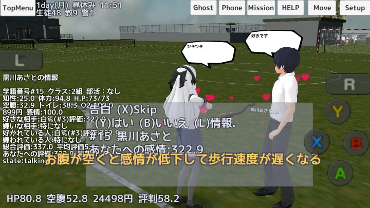 4、在他向自己表白时会弹出图一中的方框,按Y是答应(答应后如图3提示成为恋人),按B拒绝(拒绝后如图4向自己表白的人会对自己降好感,同时那个人的感情值会降3o),半天不回答会……什么事也不发生。٩۹(๑•̀ω•́ ๑)۶