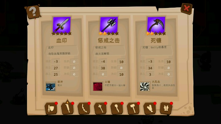 重武器就看好武士刀(出场)-冰剑(中段)-惩戒之击/死镰(后期)。血印打小怪还行,打boos伤害太低,