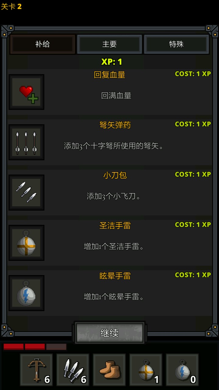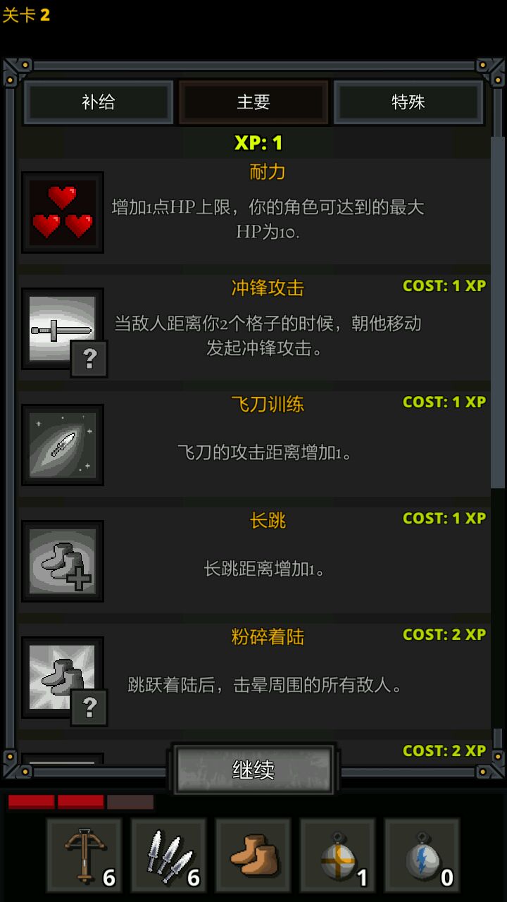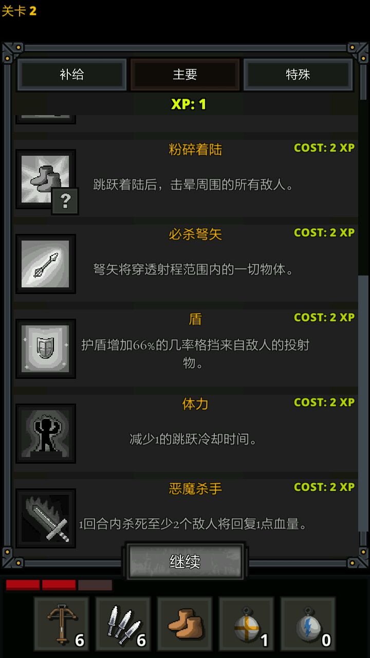 优点:最小成本创造最大利益,起手15支箭从大约10层开始一层2支基本就能保证每层都能通过,同时可以初步学习如何在战斗中发挥道具的最大利益