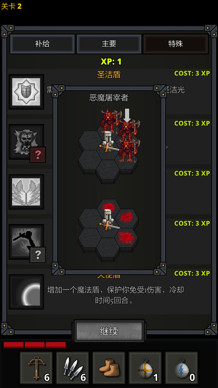 恶魔杀手:2,一回合杀死至少2个敌人时恢复一点血