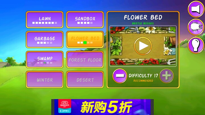 2.剧情模式里,地图从左往右依次为: 草地-沙盒-垃圾堆-花坛-沼泽-森林-冬季-沙漠共8个。