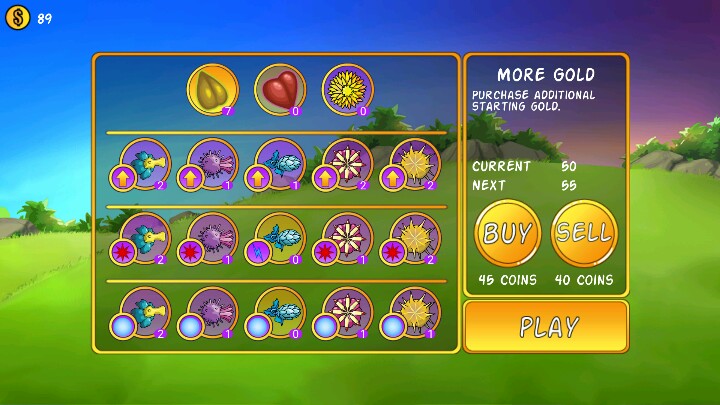 3.游戏开始之前的购买界面,最上面三个分别为增加初始金币,增加生命上限,光环塔(?)