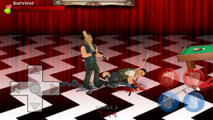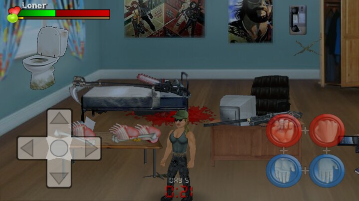 操作:按红色按钮是攻击,蓝色的是拾取物品,玩家可以拿两只手都拿物品。在不携带使用的物品时红色和蓝色一起按进入防御状态,红色一起按会捉住敌人,蓝色的一起按会合成物品,需要一些时间合成