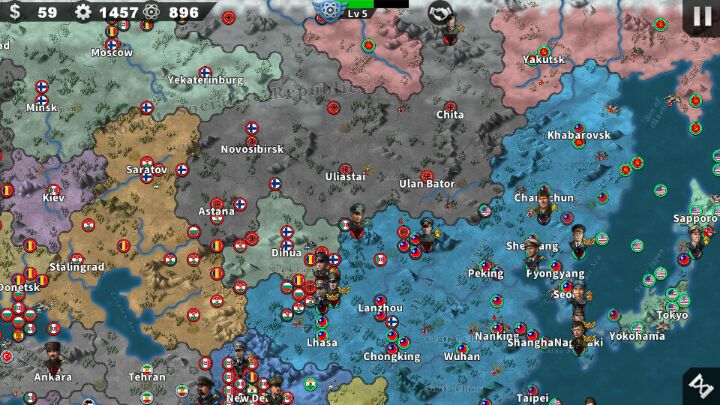 法国打完之后,就不管西线了,在海岸线上造上碉堡,卡住英国人就行了,不要渡海作战,本作再强的将领下了水就是智障,堵住英国人,不让他们上来就行,大概30-40合,开始全力对付东线,苏联还是很强的,根据经济情况选择应对方法,钱少就造点碉堡,小兵,拖拖他们的将领,自己家将领靠距离优势去打城,时刻记住,占城市,发展经济是首要任务,前期钱不够,积累工业和科技,后期有用,大概打到莫斯科,60回合左右,科技就会升到七级,现在就是全面翻盘的时候了,七级可以造导弹啦,在比利时或荷兰造导弹基地,导弹不要钱!只花工业和科技,靠之前攒的家底,一回合征服英格兰不是梦,征服了英格兰之后经济彻底ok,可以靠人海+导弹为所欲为了 (~㉨~)