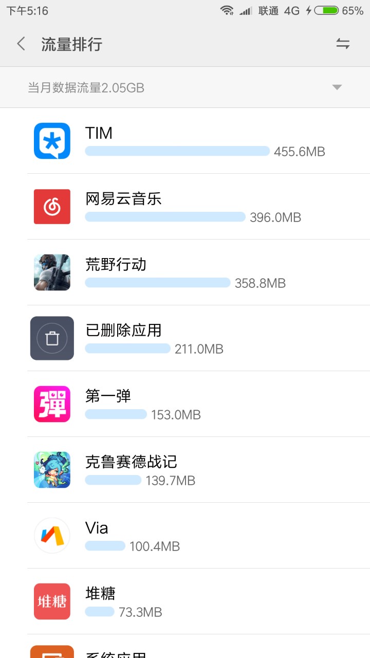 如图,tim自带的流量统计显示本月耗了200多mb,而我手机自带流量监控显示耗费400多,向运营商查询流量剩余确实没错。