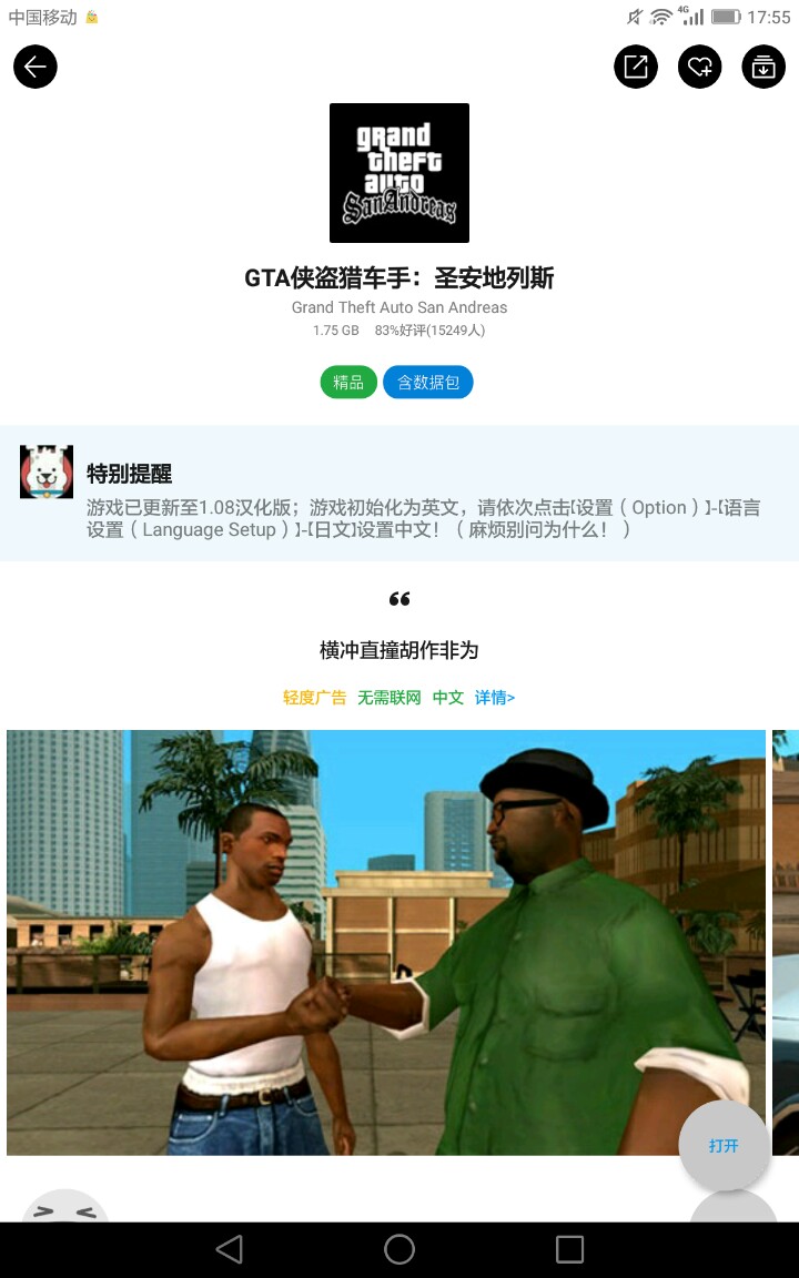 GTA系列一直以来很受大家喜爱,GTA5也卖的很好,那么今天的这款游戏是GTA:SA,SA是GTA3的资料片,讲述了主角CJ(卡尔•约翰逊)的故事。