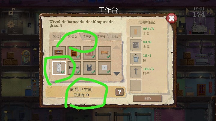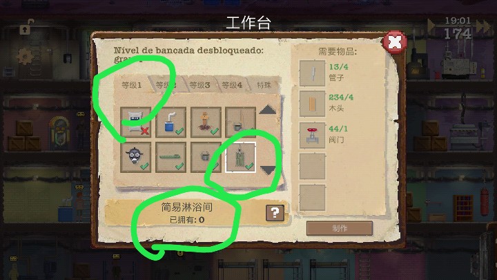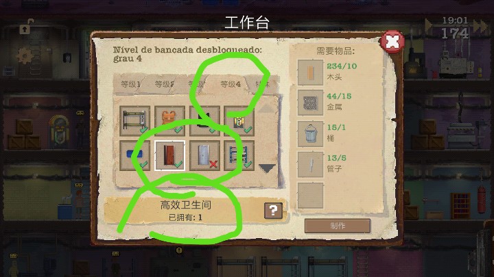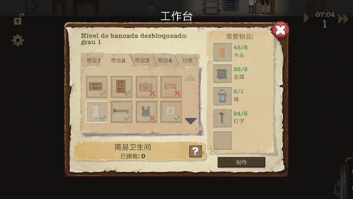 感觉我们好像玩的不一样啊,为什么没有简陋洗澡间,得三级工作台才有洗澡间