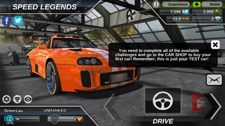 说说游戏模式。游戏中真实车辆模型,并未独立修改但是没有授权商标。初始车辆是改装Supra,但只是用于在Test范围内完成新手练习的“借用车”,你需要自己买车进行生涯,这点游戏提示会不断强调。