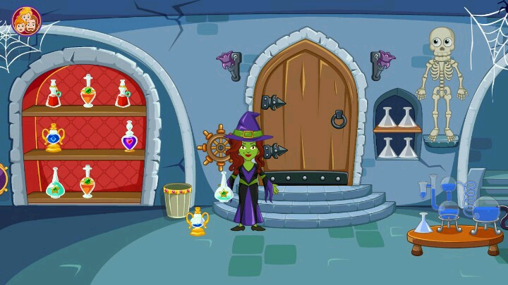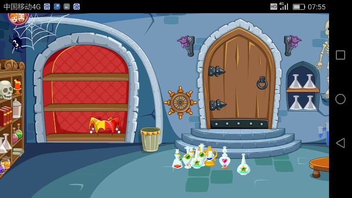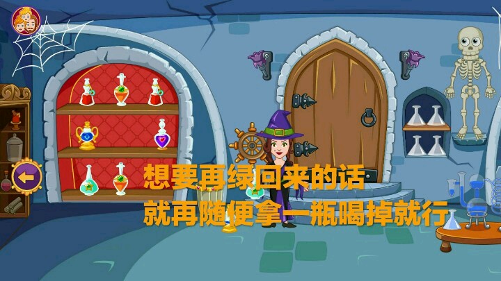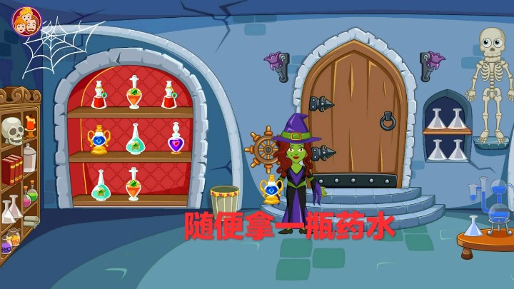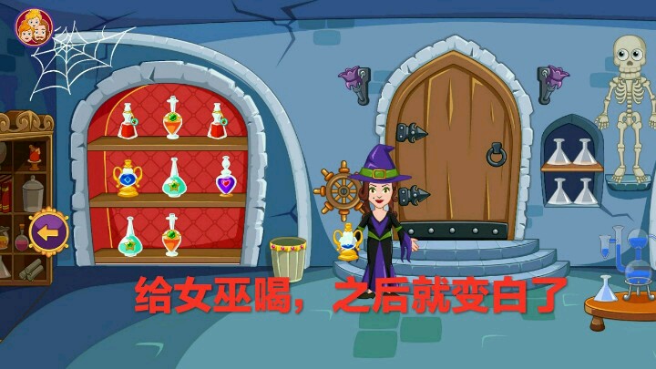 2.进去后,是女巫的房间,女巫困在牢房,细致一点,你就把药瓶装满蓝色药水,放在牢房上。不细的话,直接把女巫拿出来。