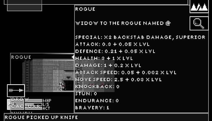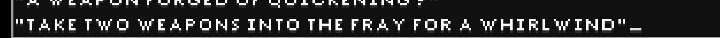 然后是剧情相关。打开主角的属性发现rogue的说明是“名叫@的盗贼留下的遗孀”……咦???……虽然这能解释很多问题……「在战斗中带上两把武器来产生旋风※」不知道是不是这个意思……