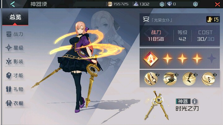 神器使当然有神器啦,不过得弄到S级才能开启,哦还要满星,SABC每隔一个等级有四个星,升星要消耗一定的灵魂碎片,越往上消耗的灵魂碎片越多,感觉又是一个巨坑!另外神器使想提高攻击力的话就得穿影装了,就相当于是装备吧,影装也分稀有度,具体的我也不清楚(๑´⍢`๑)反正该穿物理的穿物理该穿法术的穿法术然后把影装等级怼满就行了(ᵒ̤̑ ◁ ᵒ̤̑),影装刷副本或者抽获取